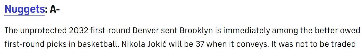 如果说火箭队是休赛期至今明面上的最大赢家,那么掘金队就是最低调的胜者,他们没有完成太多大手笔的操作,却实打实解决了球队最大短板。